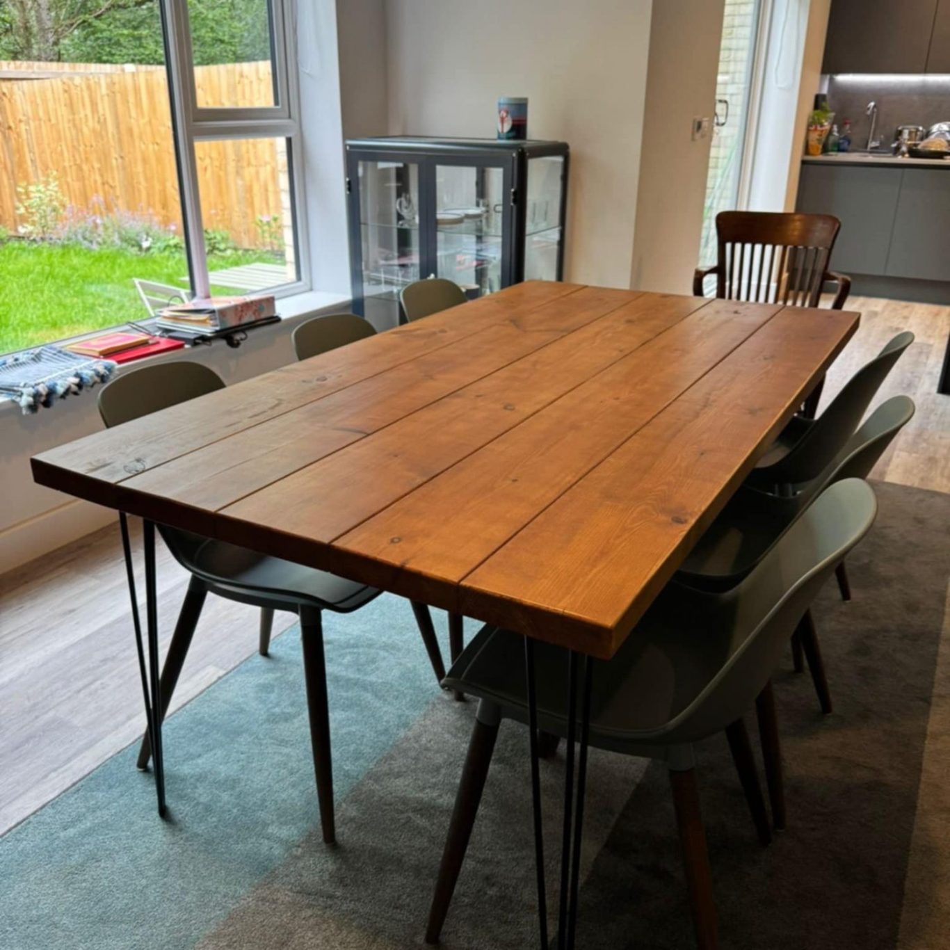 Transform your dining experience with our bespoke dining table sets, meticulously crafted to fit your unique space. Each piece is made to measure, ensuring that it perfectly complements your home’s aesthetic. Our tables are constructed from top-quality pine or oak, providing not only durability but also a timeless elegance that enhances any interior. The natural grain and rich textures of the wood are showcased in every piece, making it a premium addition to your home.